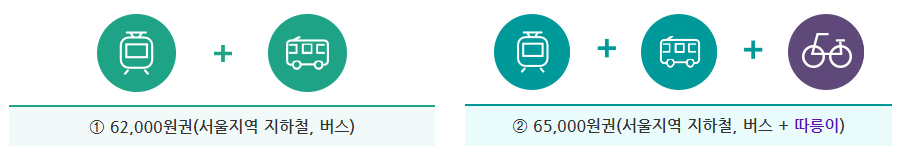 - 이용범위 : 서울지역 지하철, 서울시 면허 시내/마을버스, 따릉이