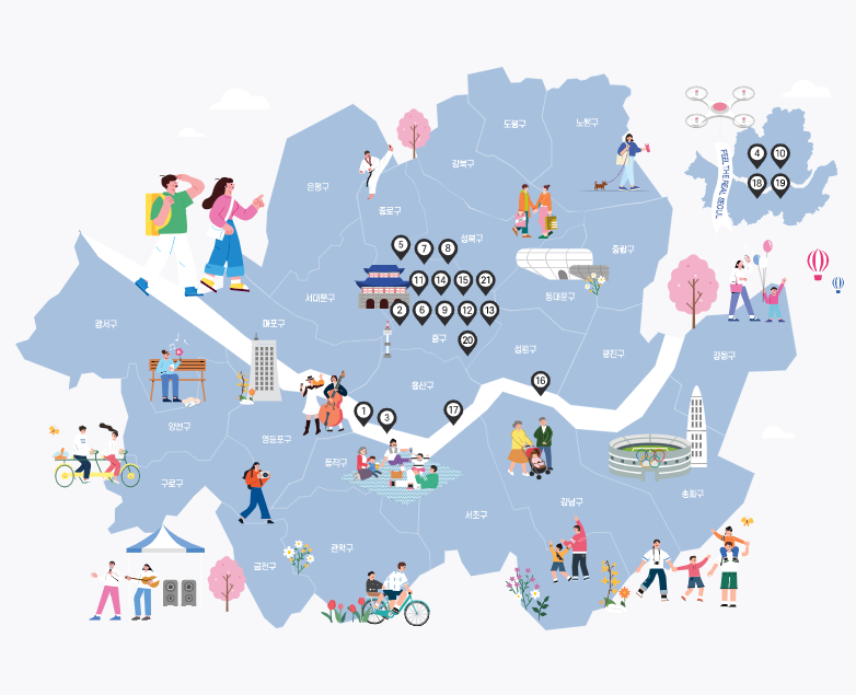 - 7개의 관광특구에서 펼쳐지는 전시, 체험, 공연