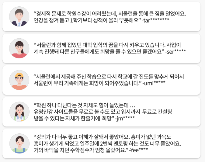 - 서울런 가입자 전원에게 멘트링 서비스 제공 및 학생들의 효율적인 학습관리 지원