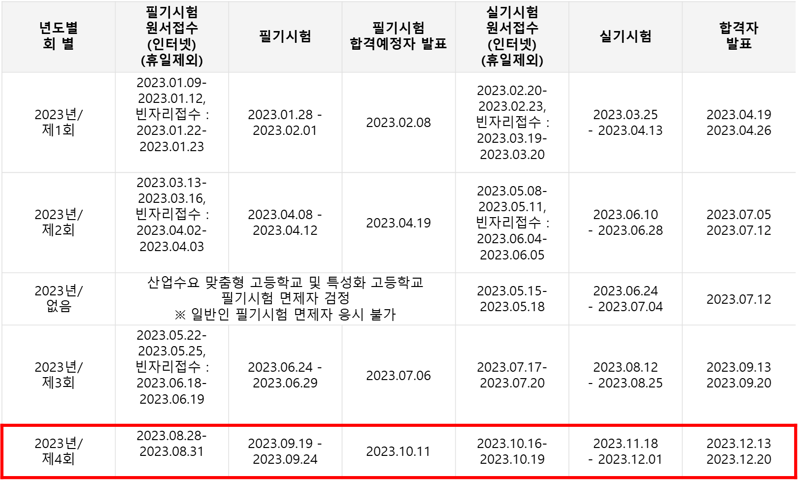 4. 기능사(정기) 일정