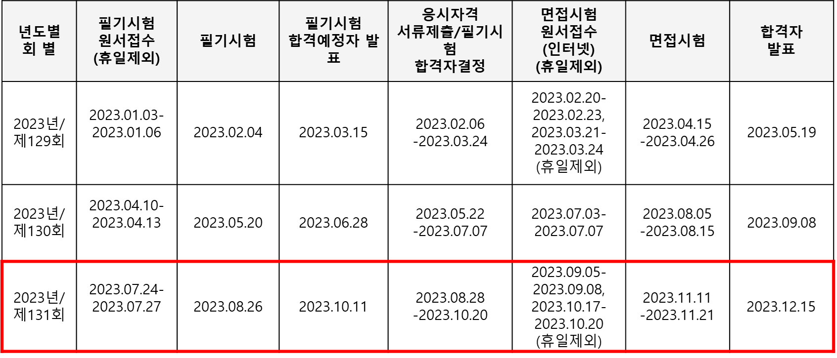 - 회별마다 시행종목이 다르므로 반드시 회별 시행종목을 확인 필요